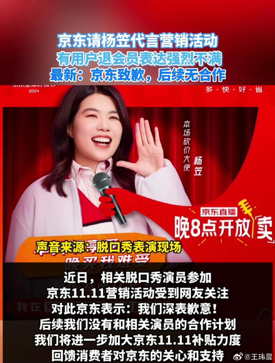 2024年双十一,京东试图借杨笠的热度做营销,却遭到男性用户抗议,要求退款或退会,女用户则质疑京东背离女性立场,最终京东口碑和股价双双下滑,活动预热彻底失败,只能删除相关内容并终止合作。